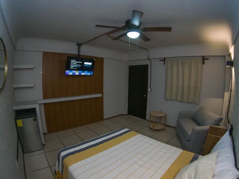 Nuestra habitación sencilla te ofrece todo lo necesario para una estancia cómoda y funcional. Está equipada con un sofá cama ideal para relajarte, una Smart TV para disfrutar de tus programas favoritos, y conexión WiFi de alta velocidad con Starlink, garantizando una experiencia de entretenimiento y trabajo sin interrupciones. Un espacio acogedor, pensado para tu confort.