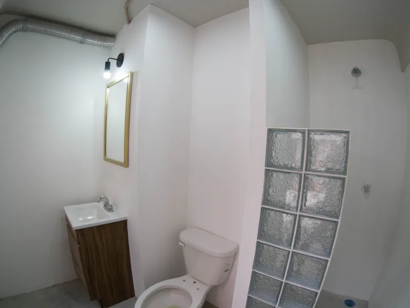 El baño completo está ubicado por separado de la habitación, ofreciendo mayor privacidad y comodidad. Cuenta con ducha, lavabo y WC, además de todos los elementos esenciales para tu bienestar durante la estancia.